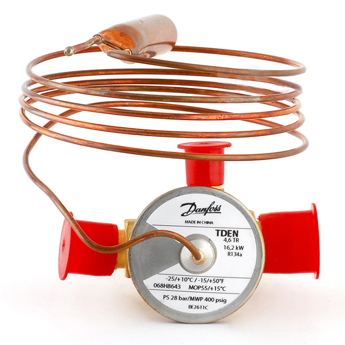 商品简介: TDE/TDEB是采用高技术标准专门设计的热力膨胀阀系列,TDE均为直通阀,与制冷系统的连接方式为钎焊形式。该系列产品包括标准单向流口型(TDE)及平衡流口型(TDEB),后者是专门为8-40RT而开发的产品,防止冷凝压力和蒸发负荷的变化而导致静态过热度的变化。TDE阀可提供K系列、AC系列和N系列三个不同应用温度范围的系列产品 商品用途: 适用于空气调节系统、热泵、汽车可调、冷水机组、冷藏箱(柜)以及传统的制冷系统 商品特点:1. 制冷剂为R134a 2. 产冷量范围8.05~107.8kw(2.3~30.8冷吨) 3. 平衡流口 型式,泄流孔自动清洗 4. MOP大操作压力保护,不受冷凝压力影响,适合不同温度环境的通用感温充注 5. 结构紧凑,密封性强,过热度可调 6. 激光焊接的不锈钢感温元件 a) 保证较佳调节能力 b) 膜片寿命更强 c) 耐压强度更高
